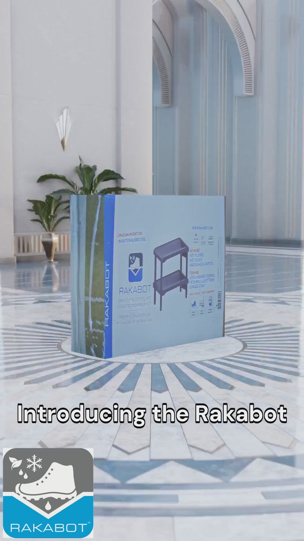 Rakabot Plastico 2 tier affordable water and mud collecting shoe and boot rack that stores 4 pairs. Stackable to 6 tier. Sturdy plastic easy to clean. Light grey color. Made In Canada Invention.